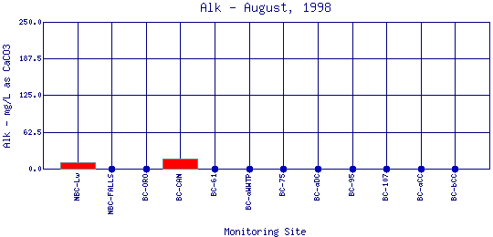 Alkalinity refers to how well a water body can neutralize acids. Alkalinity measures the amount of alkaline compounds in water, such as carbonates (CO3 2-), bicarbonates (HCO3 -), and hydroxides (OH-). These compounds are natural buffers that can remove excess hydrogen ions that have been added from sources such as acid rain or acid mine drainage. Alkalinity mitigates or relieves metals toxicity by using available HCO3 - and CO3 2- to take metals out of solution, thus making it unavailable to fish. Alkalinity is affected by the geology of the watershed; watersheds containing limestone will have a higher alkalinity than watersheds where granite is predominant. The Boulder Creek Watershed is composed primarily of granite rocks, thus the water has a lower alkalinity content.
