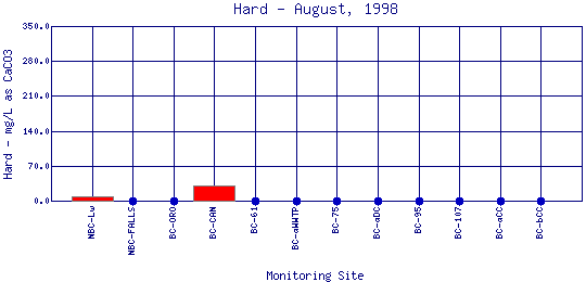 Hardness generally refers to the amount of calcium and magnesium in water. In household use, these cations (ions with a charge greater than +1) can prevent soap from sudsing and leave behind a white scum in bathtubs. In the aquatic environment, calcium and magnesium help keep fish from absorbing metals, such as lead, arsenic, and cadmium, into their bloodstream through their gills. Therefore, the harder the water, the less easy it is for toxic metals to absorb onto gills. Water in the Boulder Creek watershed is generally soft because the water comes mainly from melting snow which is low in minerals and metals.