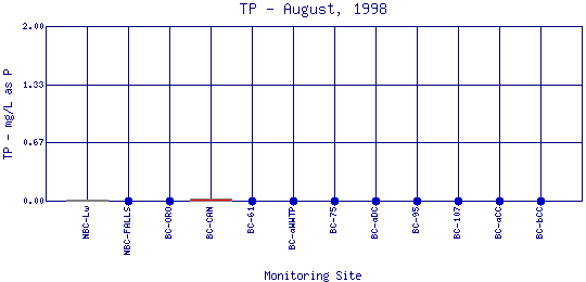 The above map indicates water quality monitoring sites. To view data at a specific site select it from the map with the mouse.
