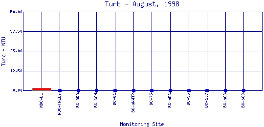 The above map indicates water quality monitoring sites. To view data at a specific site select it from the map with the mouse.