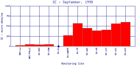 Longitudinal Specific Conductance Profiles for September, 1998