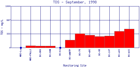 Longitudinal Total Dissolved Solids Profiles for September, 1998