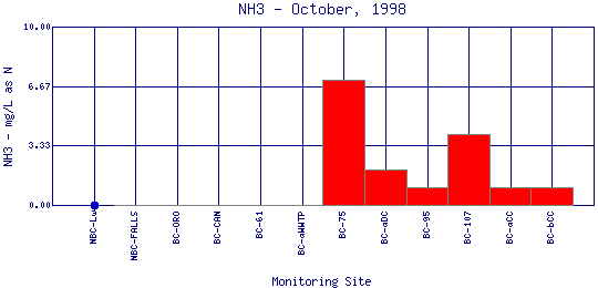 The above map indicates water quality monitoring sites. To view data at a specific site select it from the map with the mouse.