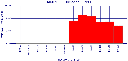 Longitudinal Nitrate + Nitrite Profiles for October, 1998
