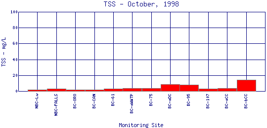 Longitudinal Total Suspended Solids Profiles for October, 1998