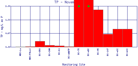 The above map indicates water quality monitoring sites. To view data at a specific site select it from the map with the mouse.