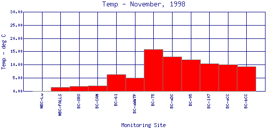 The above map indicates water quality monitoring sites. To view data at a specific site select it from the map with the mouse.