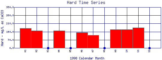 Total Hardness Time Series for 1998 Boulder Creek at 107th St |