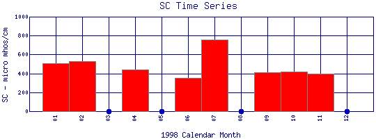 Specific Conductance Time Series for 1998 Boulder Creek at 107th St |