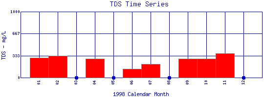 Total Dissolved Solids Time Series for 1998 Boulder Creek at 107th St |