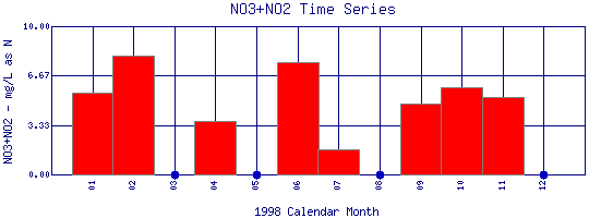 Nitrate + Nitrite Time Series for 1998 Boulder Creek at 75th St |