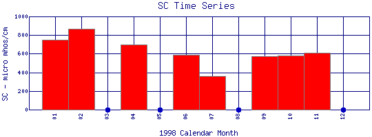 Specific Conductance Time Series for 1998 Boulder Creek at 75th St |