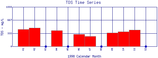 Total Dissolved Solids Time Series for 1998 Boulder Creek at 75th St |