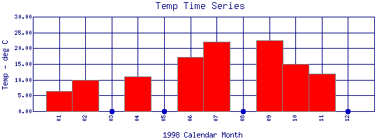 Water Temperature Time Series for 1998 Boulder Creek at 95th St |