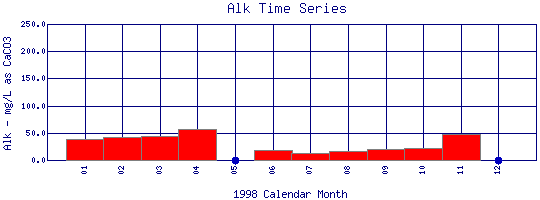 Total Alkalinity Time Series for 1998 Boulder Creek at Eben G. Fine Park |