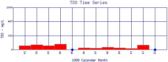 Total Dissolved Solids Time Series for 1998 Boulder Creek at Eben G. Fine Park |