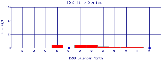 Total Suspended Solids Time Series for 1998 Boulder Creek at Eben G. Fine Park |