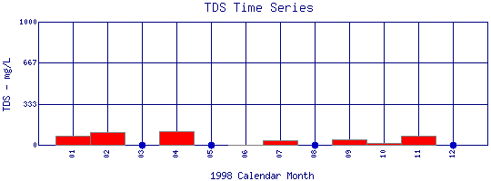 Total Dissolved Solids Time Series for 1998 Boulder Creek at Orodell |