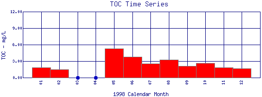 Total Organic Carbon Time Series for 1998 Boulder Creek at Orodell |