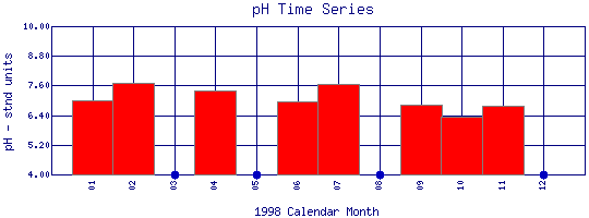 pH Time Series for 1998 Boulder Creek at Orodell |