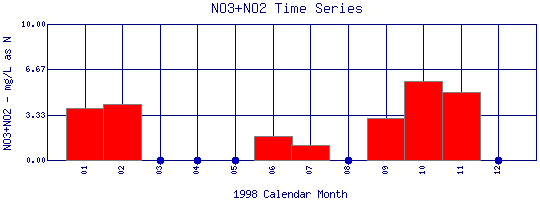 Nitrate + Nitrite Time Series for 1998 Boulder Creek Above Coal Creek |