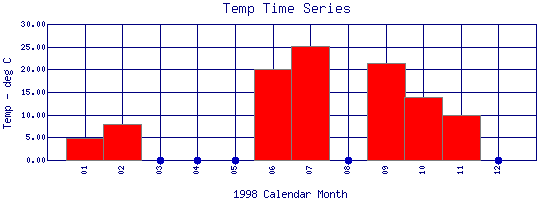 Water Temperature Time Series for 1998 Boulder Creek Above Coal Creek |