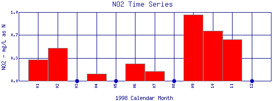 Nitrite Time Series for 1998 Boulder Creek above Dry Creek |