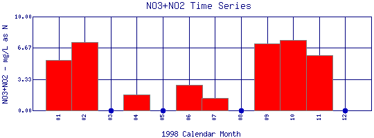 Nitrate + Nitrite Time Series for 1998 Boulder Creek above Dry Creek |
