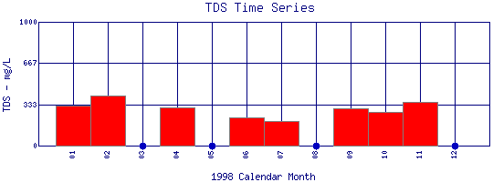 Total Dissolved Solids Time Series for 1998 Boulder Creek above Dry Creek |