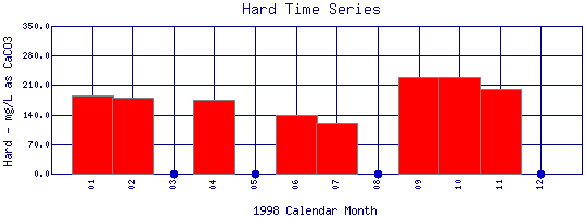 Total Hardness Time Series for 1998 Boulder Creek Below Coal Creek |