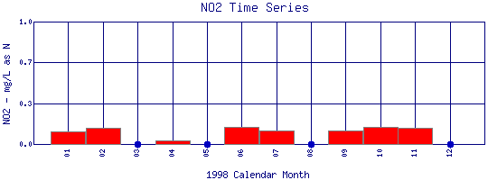 Nitrite Time Series for 1998 Boulder Creek Below Coal Creek |