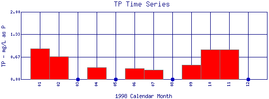 Total Phosphate Time Series for 1998 Boulder Creek Below Coal Creek |