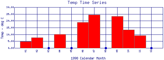 Water Temperature Time Series for 1998 Boulder Creek Below Coal Creek |