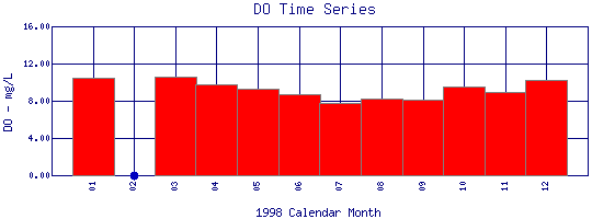 Dissolved Oxygen Time Series for 1998 Como Creek where it enters Lakewood Res. |