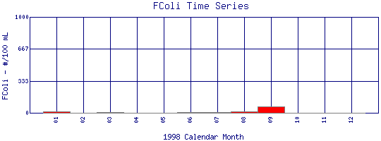 Fecal Coliform Time Series for 1998 Como Creek where it enters Lakewood Res. |