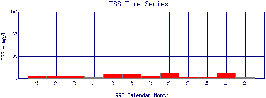 Total Suspended Solids Time Series for 1998 Como Creek where it enters Lakewood Res. |