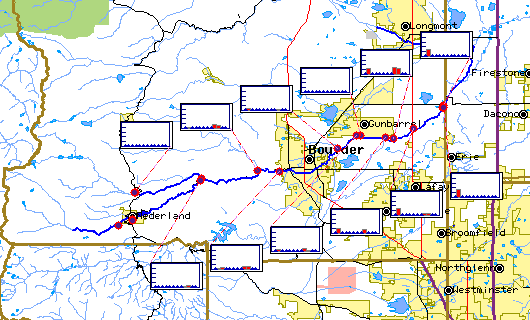 Flow is the volume of water moving past a point in a unit of time. Two things make up flow: the volume of water in the stream, and the velocity of the water moving past a given point. Flow affects the concentration of dissolved oxygen, natural substances, and pollutants in a water body. Flow is measured in units of cubic feet per second (cfs). Peak flows for Boulder Creek in the spring can reach as high as 300-800 cfs and as low as 10-50 cfs in the fall months.