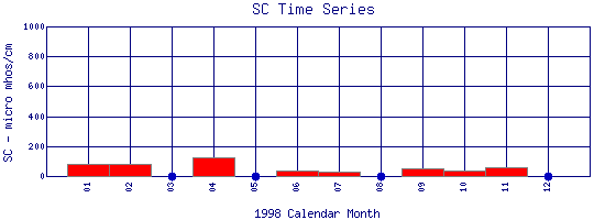 Specific Conductance Time Series for 1998 North Boulder Creek at Boulder Falls |