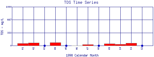 Total Dissolved Solids Time Series for 1998 North Boulder Creek at Boulder Falls |