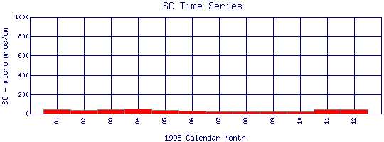 Specific Conductance Time Series for 1998 North Boulder Creek diversion to Lakewood |