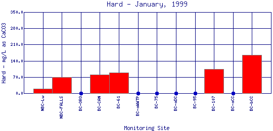 Hardness generally refers to the amount of calcium and magnesium in water. In household use, these cations (ions with a charge greater than +1) can prevent soap from sudsing and leave behind a white scum in bathtubs. In the aquatic environment, calcium and magnesium help keep fish from absorbing metals, such as lead, arsenic, and cadmium, into their bloodstream through their gills. Therefore, the harder the water, the less easy it is for toxic metals to absorb onto gills. Water in the Boulder Creek watershed is generally soft because the water comes mainly from melting snow which is low in minerals and metals.