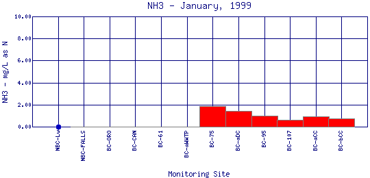 The above map indicates water quality monitoring sites. To view data at a specific site select it from the map with the mouse.