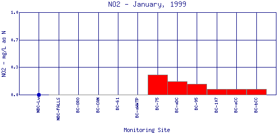 The above map indicates water quality monitoring sites. To view data at a specific site select it from the map with the mouse.