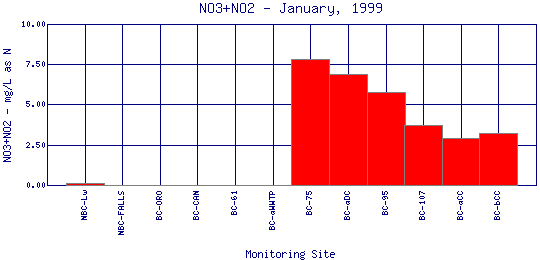 Longitudinal Nitrate + Nitrite Profiles for January, 1999