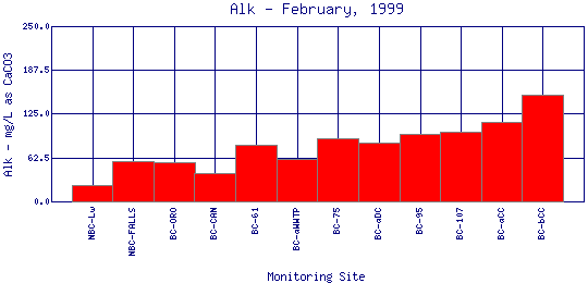 Alkalinity refers to how well a water body can neutralize acids. Alkalinity measures the amount of alkaline compounds in water, such as carbonates (CO3 2-), bicarbonates (HCO3 -), and hydroxides (OH-). These compounds are natural buffers that can remove excess hydrogen ions that have been added from sources such as acid rain or acid mine drainage. Alkalinity mitigates or relieves metals toxicity by using available HCO3 - and CO3 2- to take metals out of solution, thus making it unavailable to fish. Alkalinity is affected by the geology of the watershed; watersheds containing limestone will have a higher alkalinity than watersheds where granite is predominant. The Boulder Creek Watershed is composed primarily of granite rocks, thus the water has a lower alkalinity content.