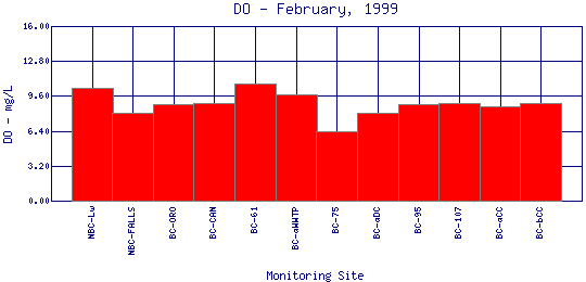 Longitudinal Dissolved Oxygen Profiles for February, 1999