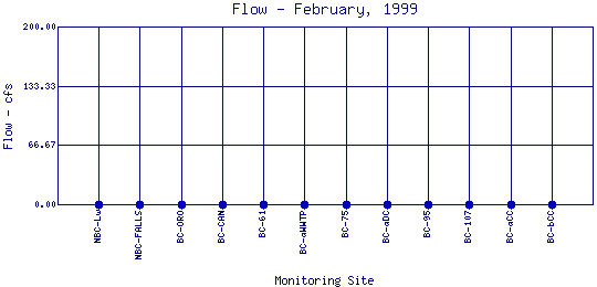The above map indicates water quality monitoring sites. To view data at a specific site select it from the map with the mouse.
