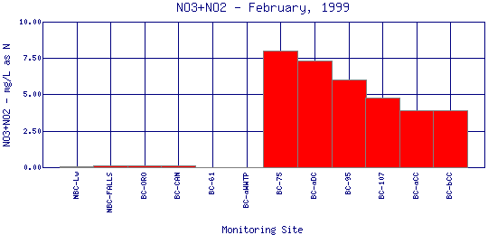 Longitudinal Nitrate + Nitrite Profiles for February, 1999