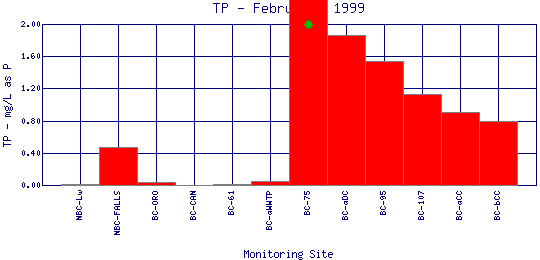 The above map indicates water quality monitoring sites. To view data at a specific site select it from the map with the mouse.