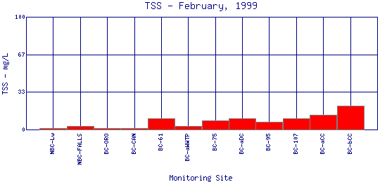 Longitudinal Total Suspended Solids Profiles for February, 1999